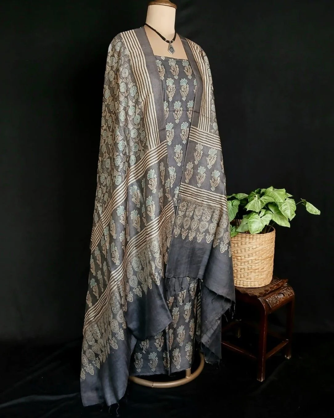 Two-piece salwar sets in pure Tussar Silk with natural dyes Ajrakh.