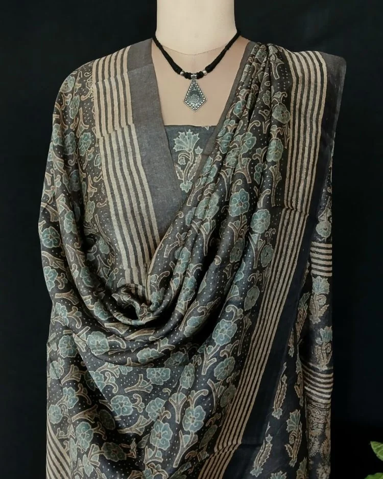 Two-piece salwar sets in pure Tussar Silk with natural dyes Ajrakh. See more details below