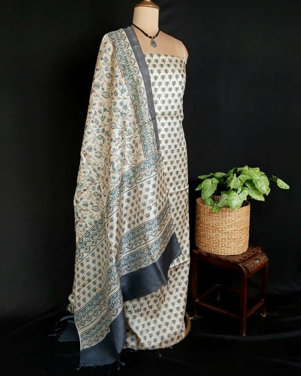 Two-Piece Salwar Sets in Pure Tussar Silk with Natural Dyes Ajrakh – (TPSS1006)