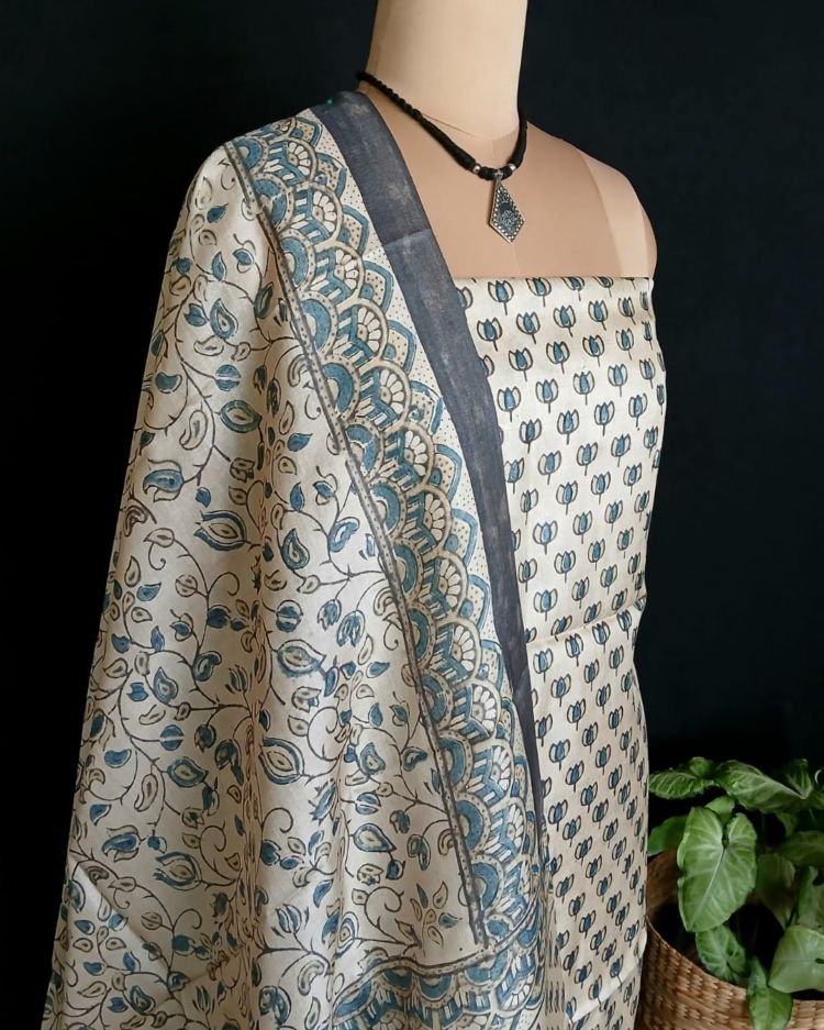 Two-piece salwar sets in pure Tussar Silk with natural dyes Ajrakh. See more details below