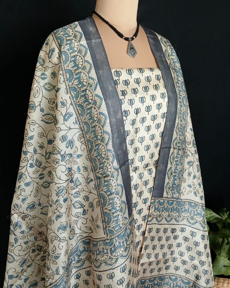 Two-piece salwar sets in pure Tussar Silk with natural dyes Ajrakh.