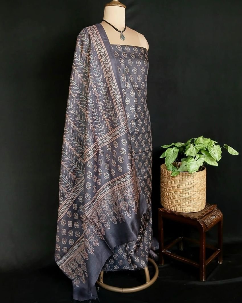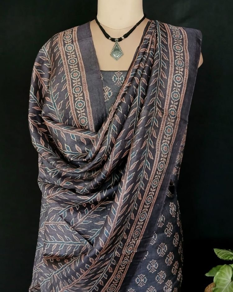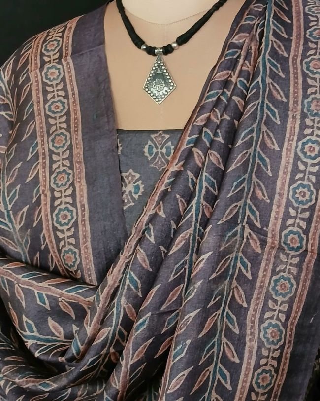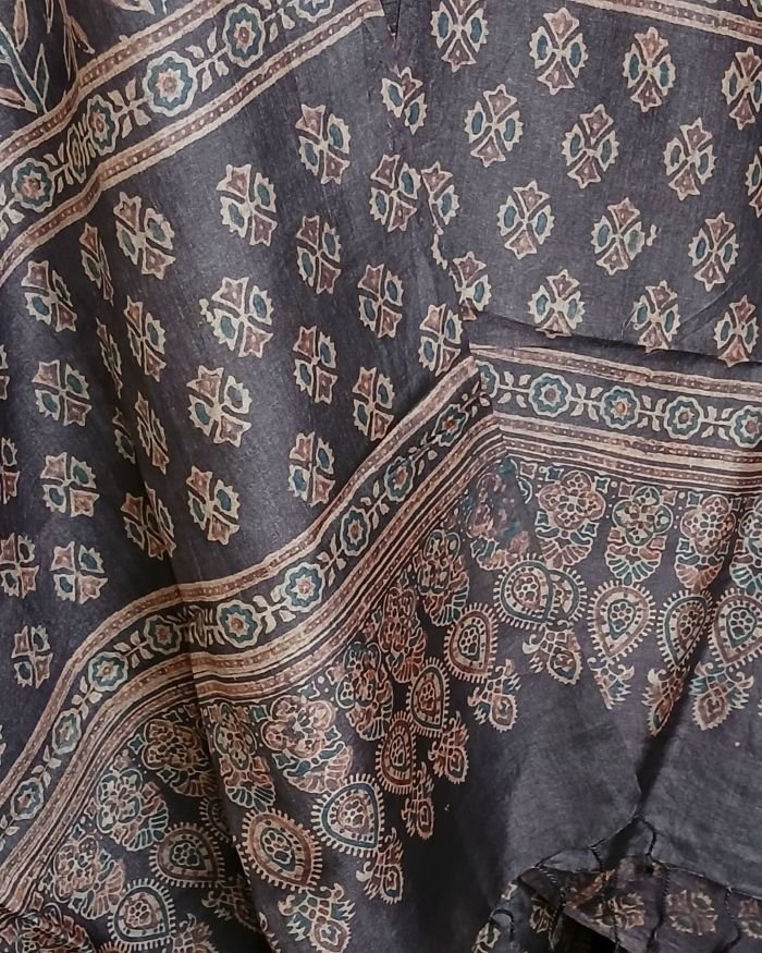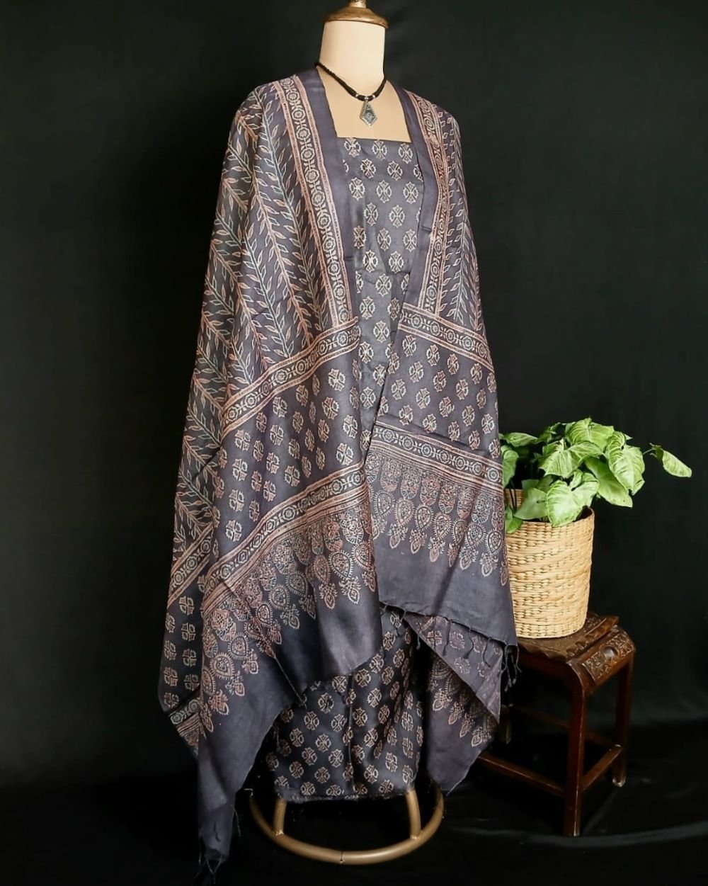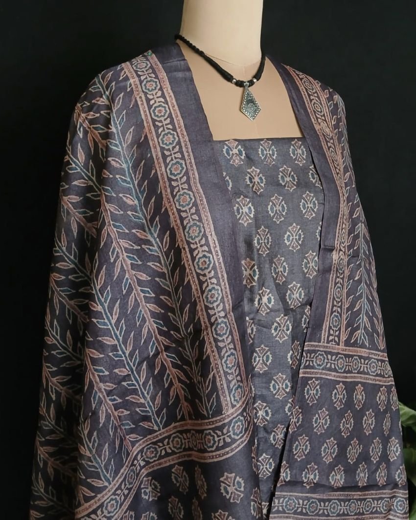 Two-Piece Salwar Sets in Pure Tussar Silk with Natural Dyes Ajrakh – (TPSS1007)