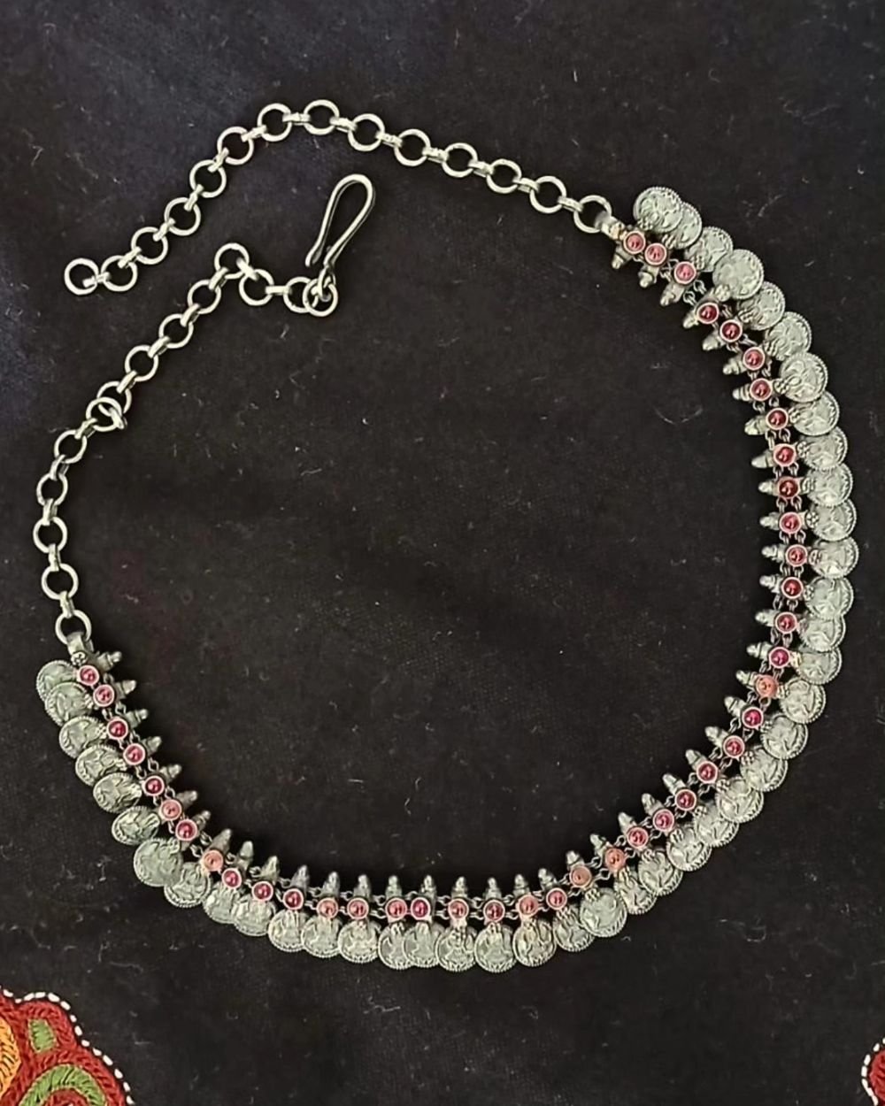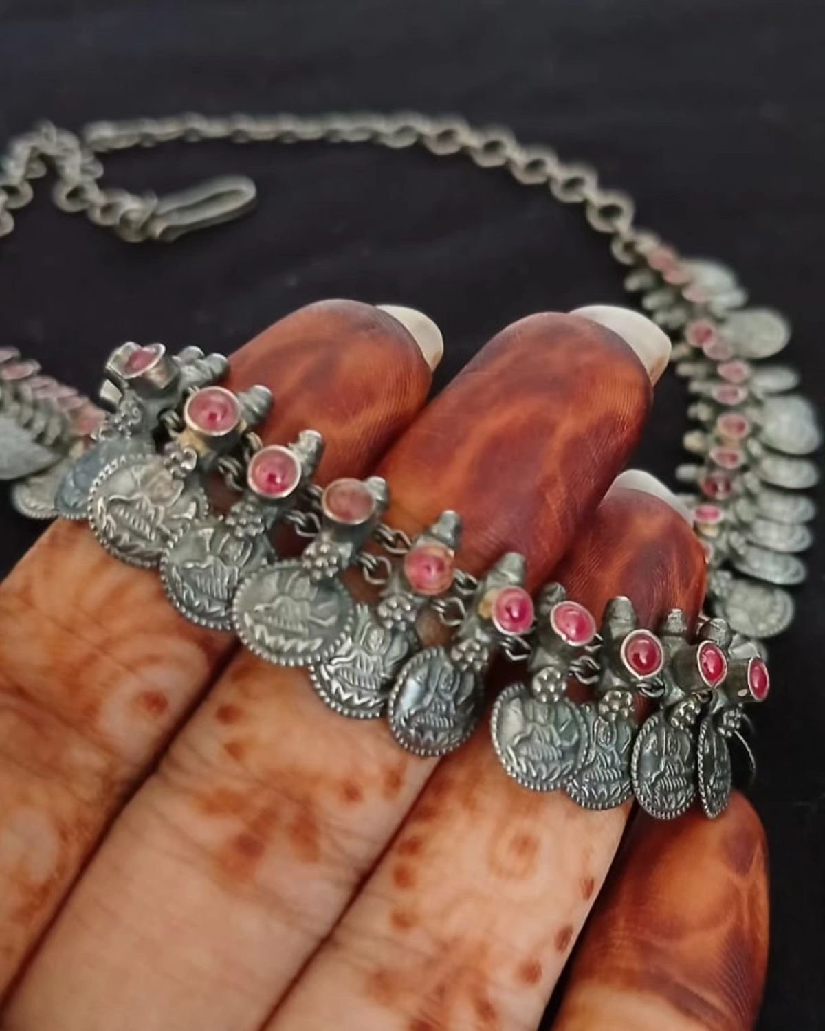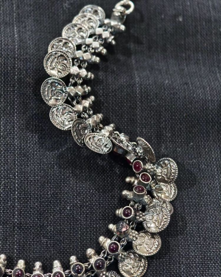 Vintage Style Lakshmi Necklace with red stone insets in 92.5 Silver
